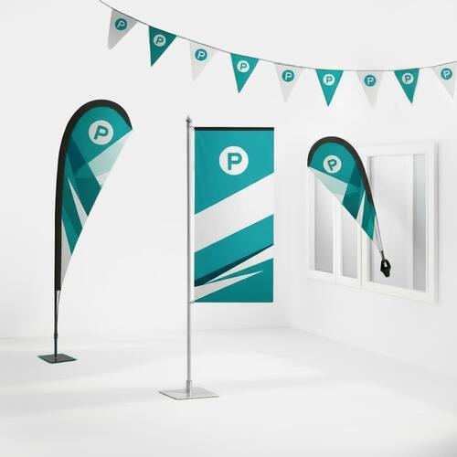 Machen Sie mit wehenden Fahnen auf Ihr Unternehmen aufmerksam, indem Sie Flaggen mit Ihrem Firmenlogo versehen.