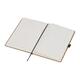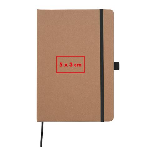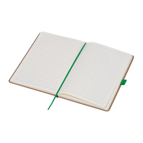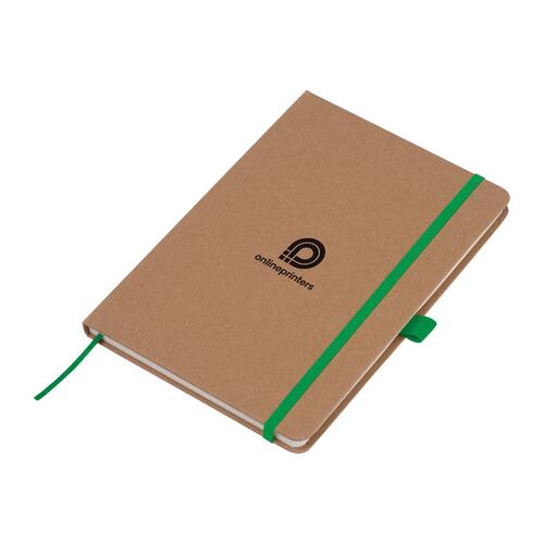 - A5 Notizbuch aus recyceltem Papier mit 160 linierten Seiten, einem Lesezeichen sowie einer Kugelschreiberschlaufe die farblich auf das Verschlussband abgestimmt ist