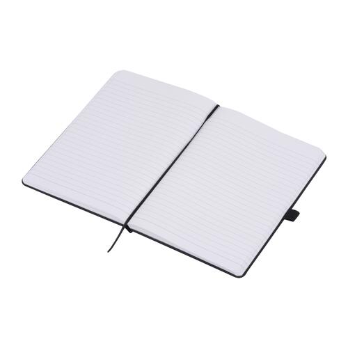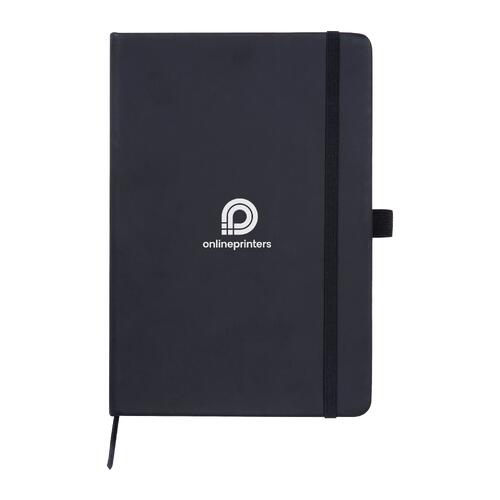 - A5 Notizbuch mit PU-Einband, Lesezeichen, Verschlussband, Kugelschreiberschlaufe und 120 linierten Seiten aus Steinpapier
