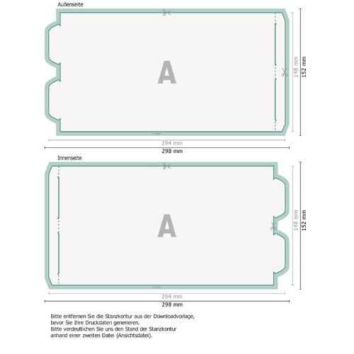 - Lieferung: fertig gestanzt/gerillt und plano liegend