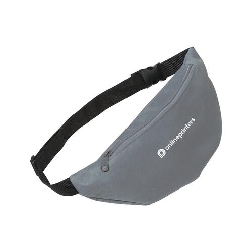 Graue Gürteltasche mit Reißverschluss und verstellbarem Gurt.