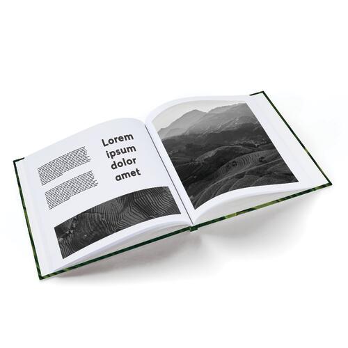 - Hardcover-Buch im Hochformat mit geradem Rücken und spitzen Ecken, inklusive weißem Kapitalband