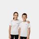 Weißes Kinder-Laufshirt aus Polyester mit kurzen Ärmeln.