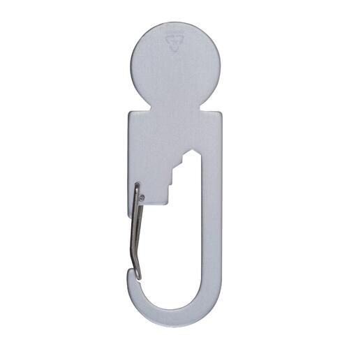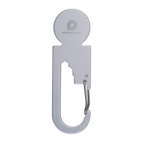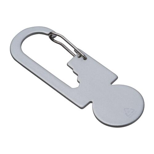 - Multitool aus recyceltem Aluminium mit Einkaufswagenchip, drei verschieden großen Sechskantschlüsseln und einem Karabiner