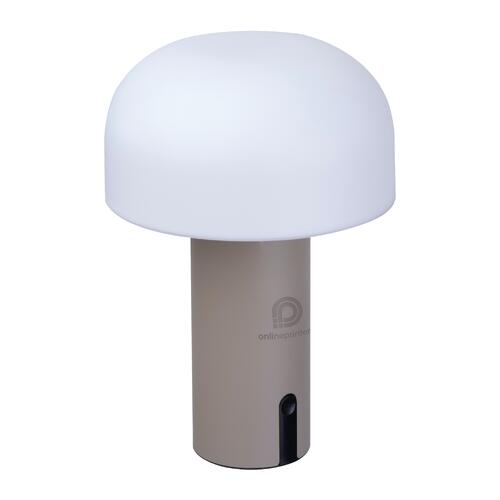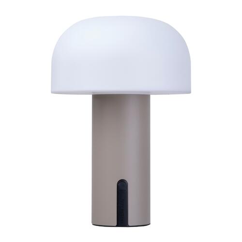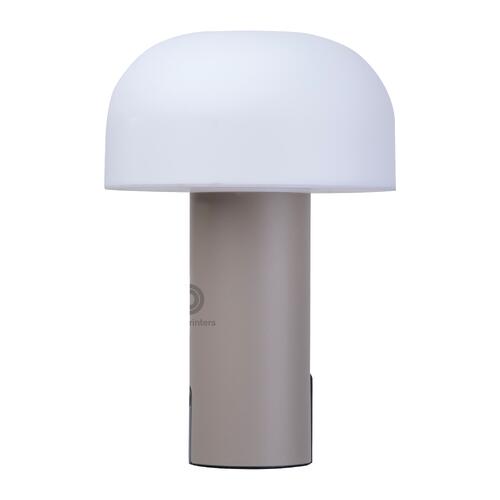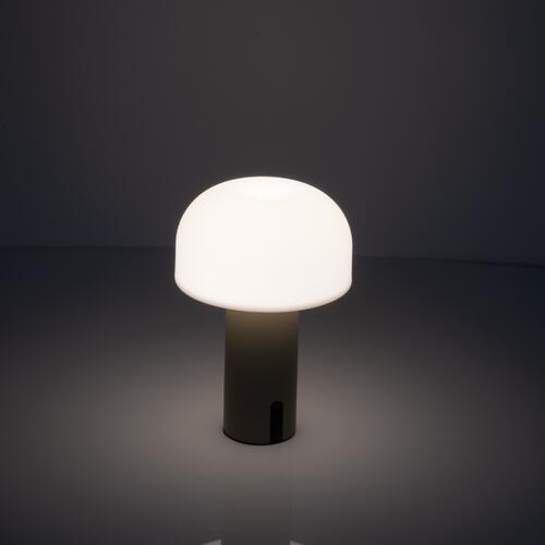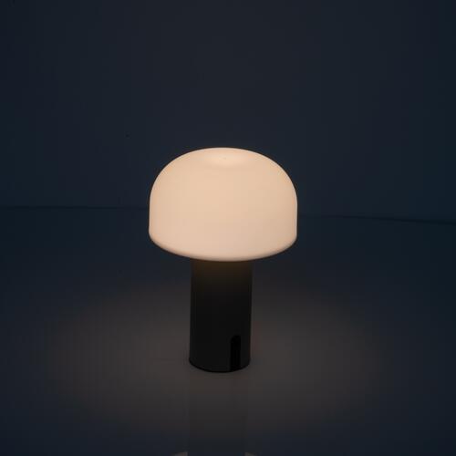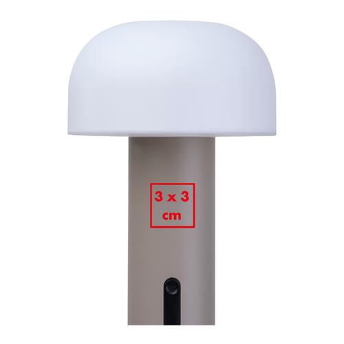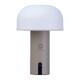 - Akku-Lampe (1.800 mAh) mit Kunststoffschirm und Edelstahlfuß sowie einem 70 cm USB-C-Ladekabel
