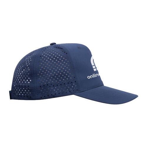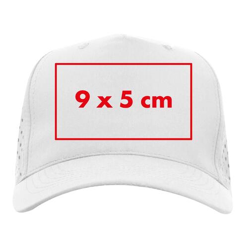 - 5 Panel Baseballcap aus Polyester mit Klettverschluss am Hinterkopf und Schweißband innen
