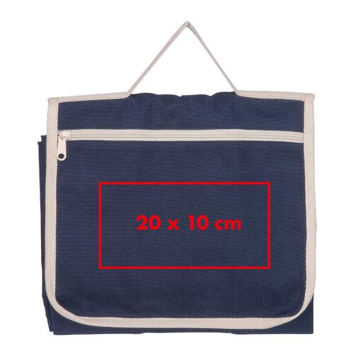 - Picknickdecke aus recycelter Baumwolle (Grammatur 320 g/m²), mit Tragegriff, Reißverschlusstasche sowie einem Überschlag mit Klettverschluss