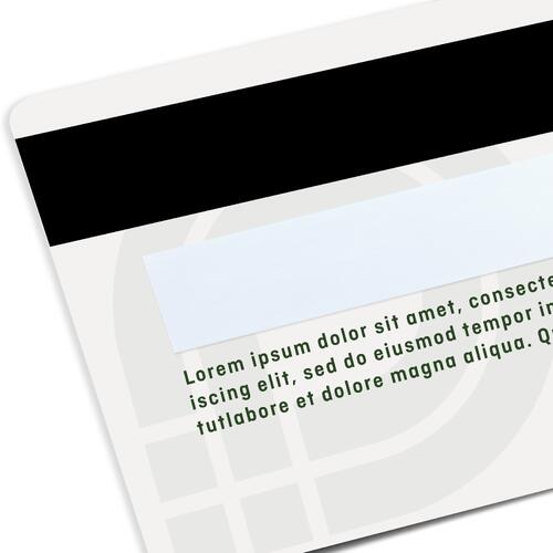 Druckdatenhinweise Plastikkarten mit Unterschriftenfeld und Magnetstreifen, 8,6 x 5,4 cm, beidseitig bedruckt