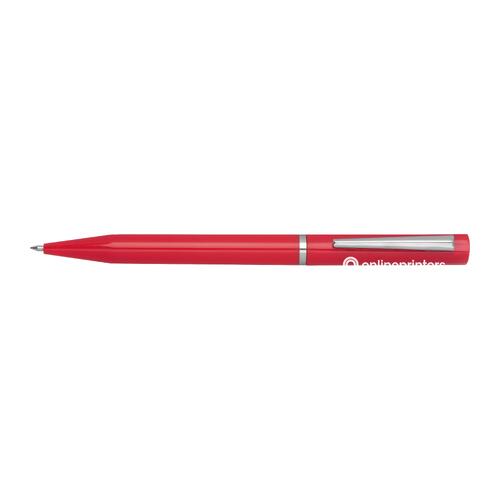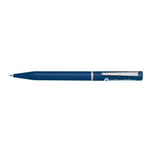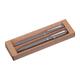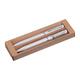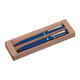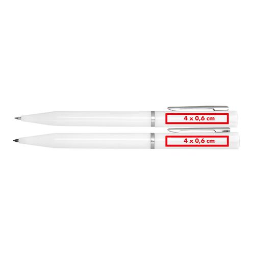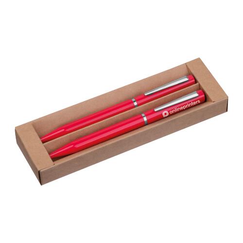 - Schreibset bestehend aus einem blauschreibenden Drehkugelschreiber, einem tintenlosen Drehstift und einer Pappbox