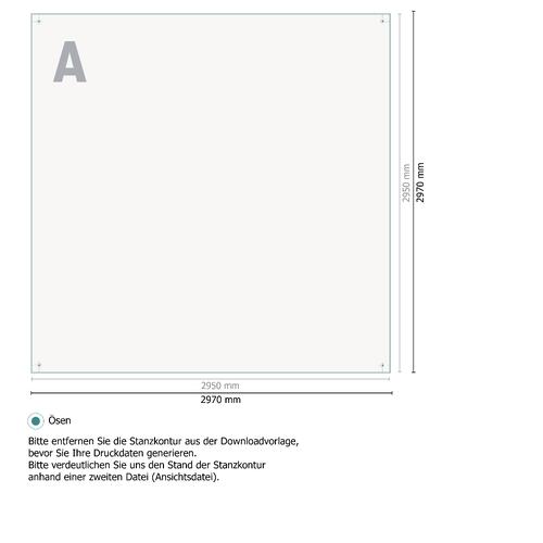 - rundum mit Fahnenband und Ösen an den Ecken versehen