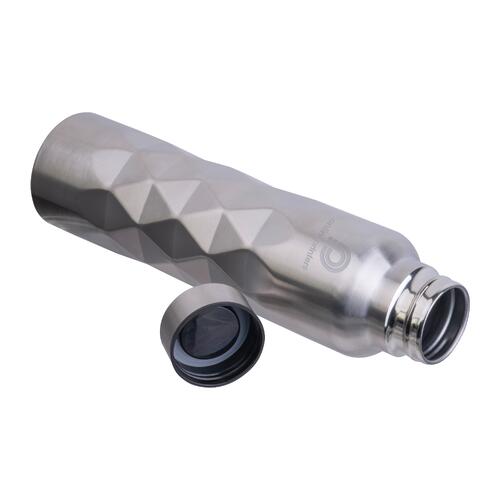 - Einwandige Trinkflasche aus recyceltem 304er-Edelstahl mit Trageschlaufe am Deckel und einem Füllvermögen von 1.000 ml