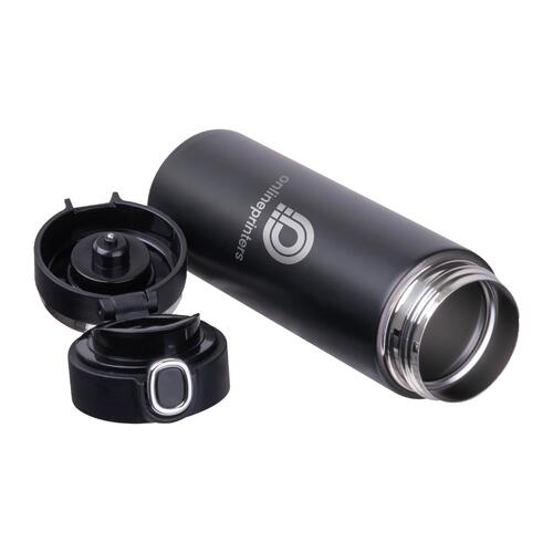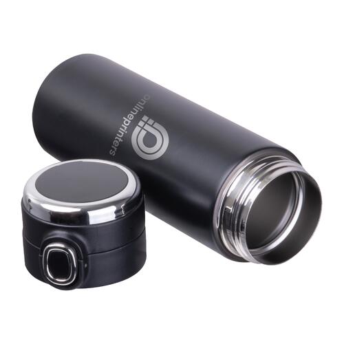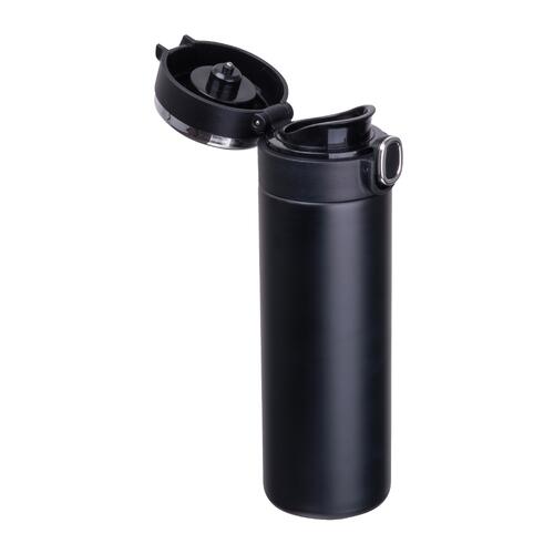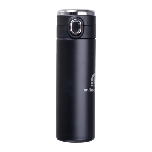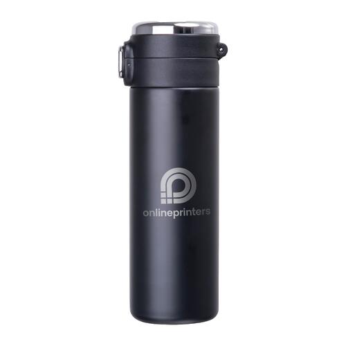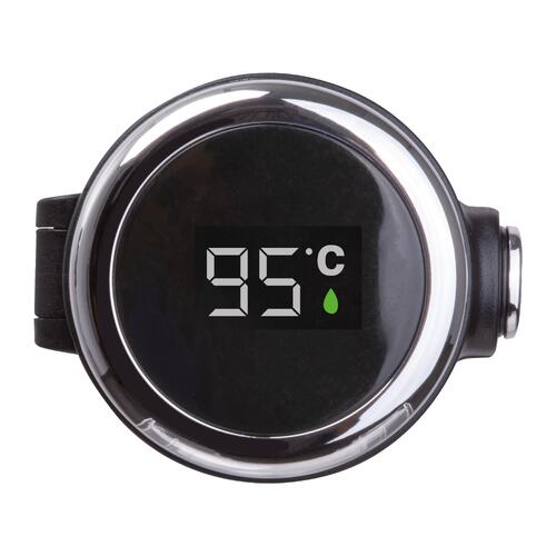 - Vakuum Isolierflasche (Fassungsvolumen 420 ml) aus Edelstahl mit Temperaturanzeige im Deckel und Sicherheitsverschluss.