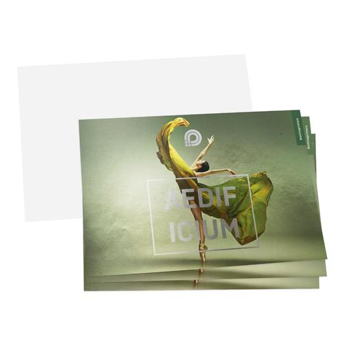 - Vorderseite vierfarbig bedruckt, Rückseite unbedruckt (4/0)