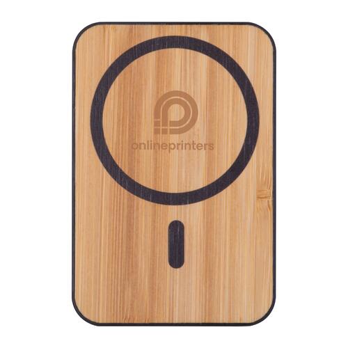 - MagSafe Wireless Powerbank mit 5.000 mAh (15 Watt) aus Kunststoff mit Bambusapplikation auf der Vorderseite rubberfinish Oberfläche auf der Rückseite