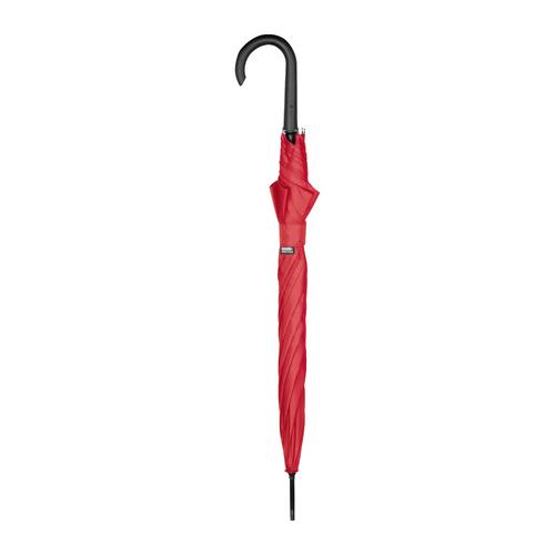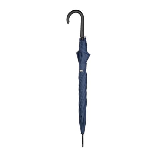 - Automatiksturmschirm (winddicht) mit aus 190T recyceltem Polyester mit gebogenem Kunststoffgriff (ABS) und Metallspitzen